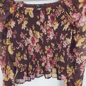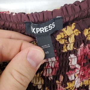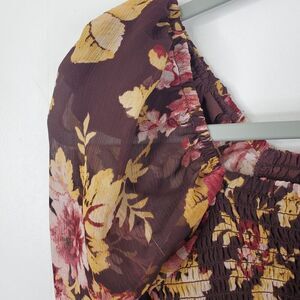 Express Blouse Puff Shoulder Sheer Sleeves Smocked Dark Cottagecore Womens XS