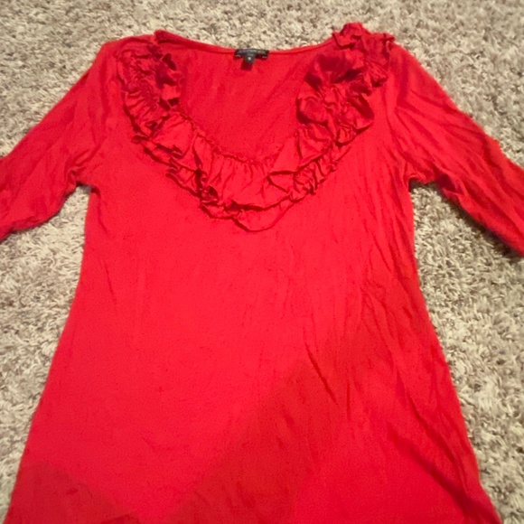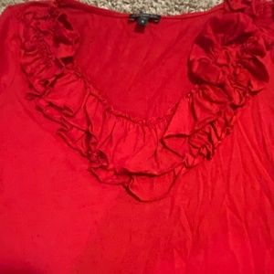 Express blouse, ruffle neck, red, small