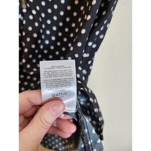 Express Blouse Top Small Black White Polka Dot Zip V-Neck Short Sleeve High Low