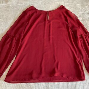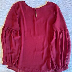Express Blouse With Sheer Peasant Sleeves & Keyhole in Dark Wine Red Size L