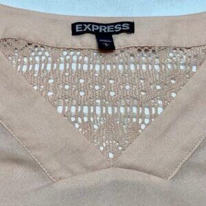 Express Blouse Women's Large Light Peach V-Neck Tunic 3/4 Sleeve Lace Back EUC