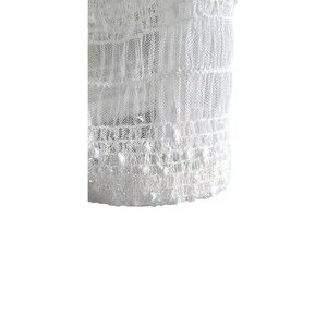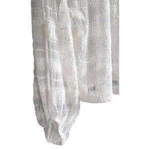 Add a touch of elegance to your wardrobe with this beautiful Express blouse. The cream-colored blouse features a mock neck and button closure, making it perfect for a wedding, party, or casual occasion. The blouse is made of a mesh fabric that gives it a sheer look, and it comes in a regular fit that suits most body types.