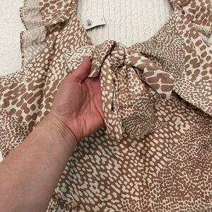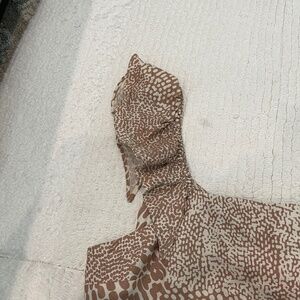 NWT Express Blouse Women's Size L Brown Linen Blend Leopard Peplum Cutout Crop