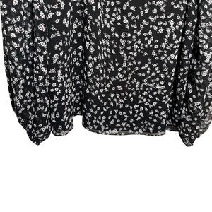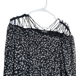 Express Blouse Women's Small Black Floral Strappy 3/4 Sleeve Sheer Printed Top