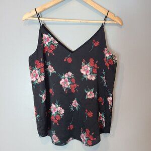 Stylish and versatile, this black floral satin top features a flattering V-neck and spaghetti straps. Ideal for casual or dressy occasions. Excellent condition with no signs of wear. So soft. Lined.