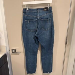 These Express jeans feature a stylish ankle and cropped design in a classic blue hue. The raw hem adds a trendy, unfinished look, perfect for a casual day out. With a focus on comfort and style, these jeans are a versatile addition to any wardrobe.