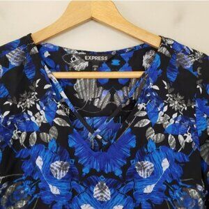 Express | Blue & Black Boho Print Blouse Size XS