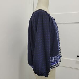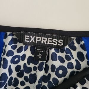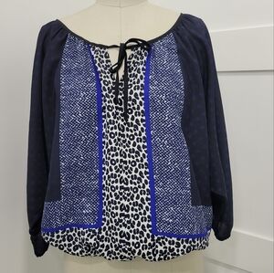 EUC Express Blue Black Leopard Animal Print Blouse Dolman Sleeve Keyhole Top Size M Black, Blue, White