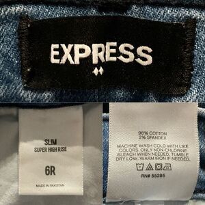 Express Blue Button Fly Slim Super High Rise Jeans 6 Regular 6R