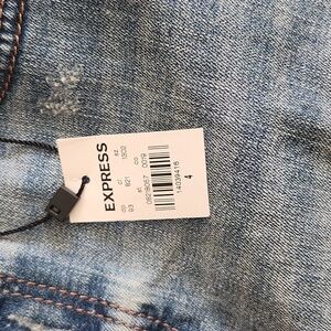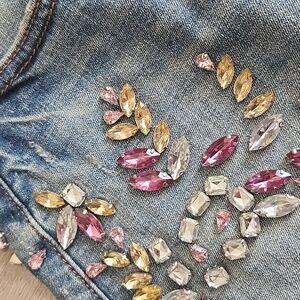 Stylish denim skirt from Express. Features colorful jewel embellishments. Perfect for casual outings.