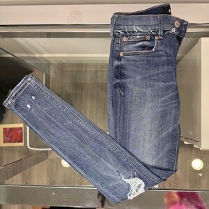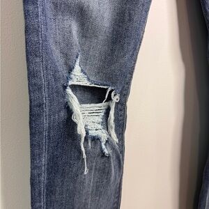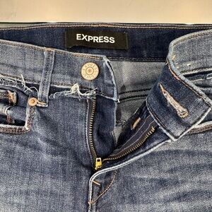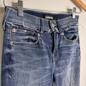 Express Blue Denim Women’s Distressed Mid-Rise Stretch Jeans (00R)