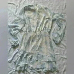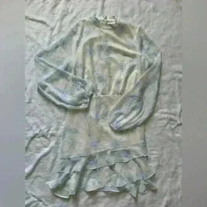 Express Blue Floral Chiffon Dress, High Neck, Size Small