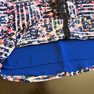Chic haltered top with a vibrant blue pattern. Features delicate straps and a stylish design. Accurate measurements in photos.
