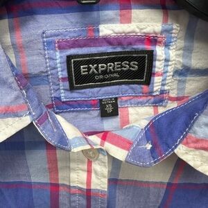 Express Blue Pink Plaid Button Down Shirt