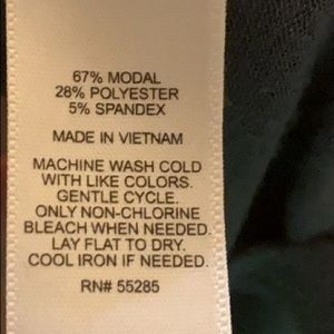 67% Modal, 28% Polyester, 5% Spandex.