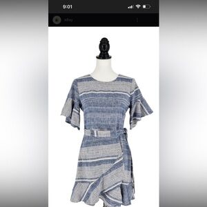 Embrace a relaxed resort vibe with the Express Blue Sundress, featuring a charming off-the-shoulder neckline and flutter sleeves. This casual dress is designed with ruffled details and a buttoned front, making it perfect for laid-back outings. The sundress style ensures comfort and effortless elegance, ideal for warm weather adventures.