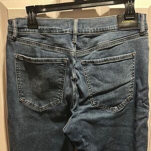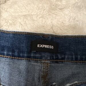 These Express skinny jeans in a classic blue hue offer a sleek, tapered fit that enhances your silhouette. Crafted from premium denim, they feature subtle fading and whiskering for a modern touch. Perfect for any casual outing, these jeans combine style and comfort effortlessly.