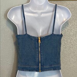 This fitted camisole from Express features a sleek bustier design in a vibrant blue hue. The sleeveless crop top is crafted to accentuate the silhouette, making it a stylish choice for any casual outing. Size 2. Pit to pit 15.5”. Shoulder to hem 17”. Like new.