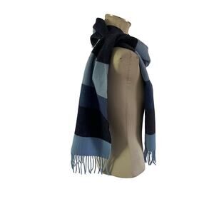 Express Blue Stripe Wool & Cashmere Scarf w Fringe Y2K 2000s Soft Scotland