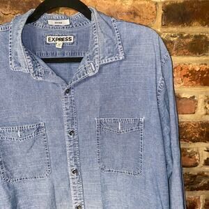 Express Blue Striped Fitted Long Sleeve Button Down Shirt Men's Size XL