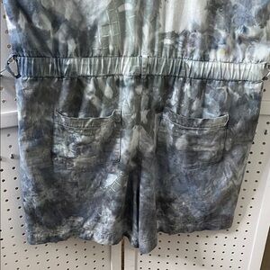 Chic blue tie-dye romper with a stylish zip-up front. Perfect for casual outings.