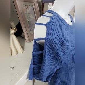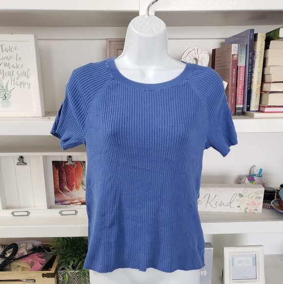Express top with cute cut off designs on sleeves Color: Blue Size : Large 100% Cotton