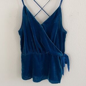Express Blue Velvet Wrap Top Spaghetti Strap Top