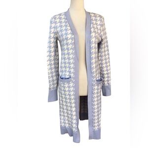 Express Blue White Open Front Duster Cardigan Pockets Size Small