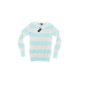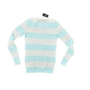 Express Blue & White Pullover Sweater XS New With Tags Striped Mesh Long Sleeve