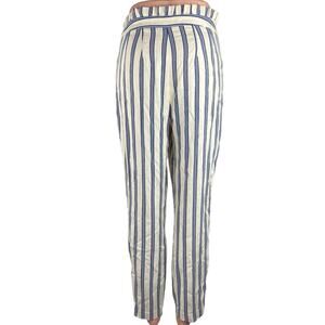 Express Blue White Stripe Ruffle High Rise Straight Leg Paperbag Trouser Pants 2