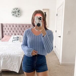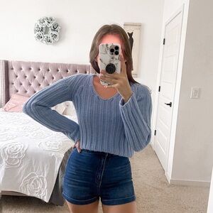 Express Blue Wool Blend Sweater Size XS Ribbed Thick Knit Preppy