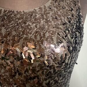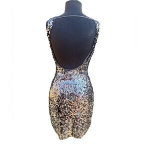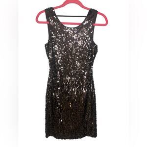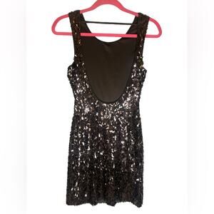 Stunning sequin mini dress. Features a sleeveless design. Perfect for a night out.