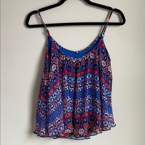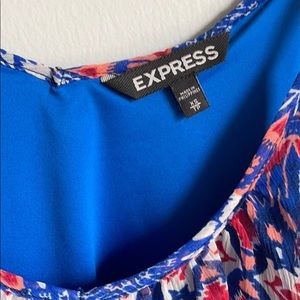 Express XS Blue/Multicolor Tanktop/Blouse Solid Blue Tanktop with multicolor mesh overlay Adjustable straps worn once