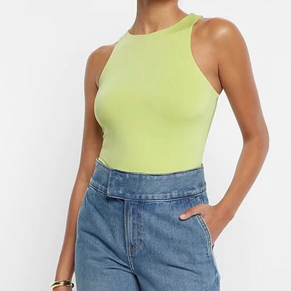Women’s NWT Express Body Contour Collection Compression High Neck Neon Yellow/Lime Green Bodysuit Tank. Smooth. Sculpt. Define your silhouette.