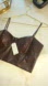 Designed in a soft faux leather exterior with a sleek corset silhouette, this top features a sweetheart neckline, adjustable spaghetti straps, a straight hemline, and a cropped length. Fully lined for comfort and fit. Color: Espresso/Brown. Size Large.