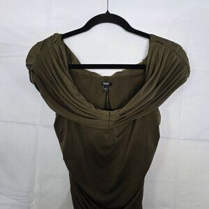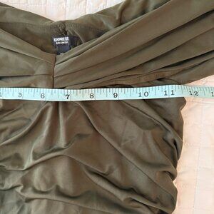 Express Body Contour Olive Off-Shoulder Ruched Bodysuit M Stretch