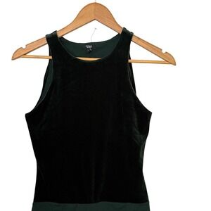 Express Body Contour Velvet Thong Bodysuit Women Size S Green open Back
