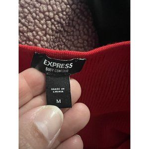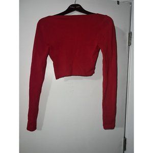 Express Body Counter Women's Red Ribbed Criss Cross Long Sleeve Size Med