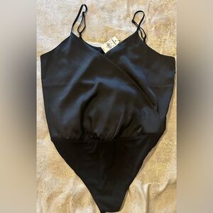 NWT. Express black thong body suit. Adjustable straps and low crisscross front.