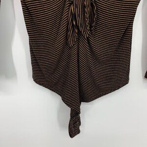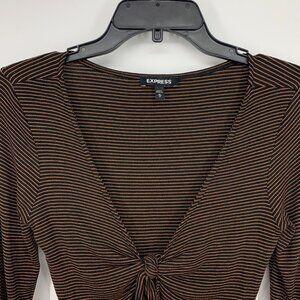 Express Bodysuit Womens Size Medium Brown Black Stripe Knotted Plunge V Neck Long Sleeve Knit. Great pre-owned condition. Snap button closure.