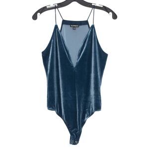 Express Bodysuit Velvet Y2K 90s Grunge Coquette Romantic Goth Luxe Blue Small