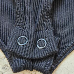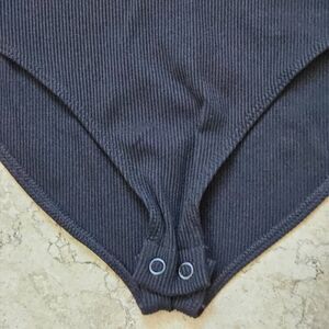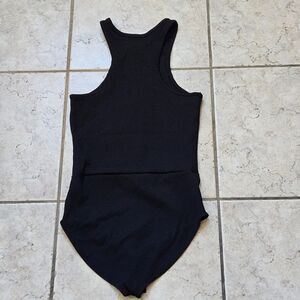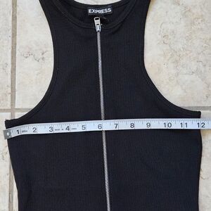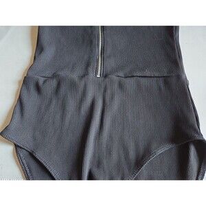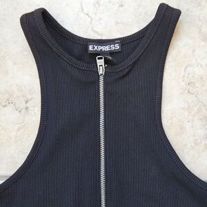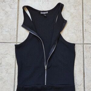 Express Bodysuit Women XS Black Body Contour Sleeveless Ribbed Front Zip Classic