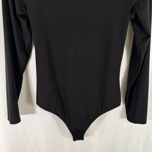 Express Bodysuit Women's Medium Black Body Contour Long Sleeve Open Back Mock Ne