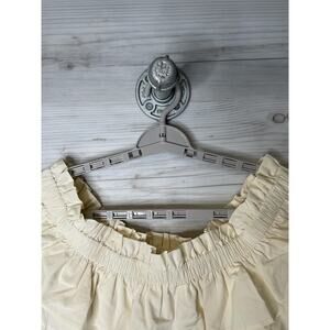 Express Bodysuit Womens XL Ivory Off Shoulder Ruffle Smocked Snap One Piece