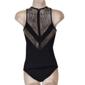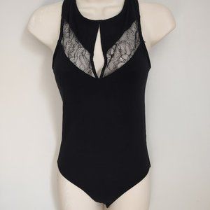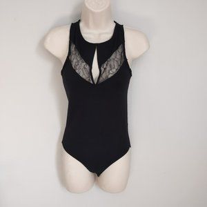 Express Bodysuit XS Black Sleeveless Lace Cutout