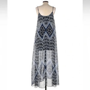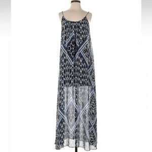 Express Boho Maxi Chiffon Tribal Bohemian Dress Long Sheer Blue Black Size XS