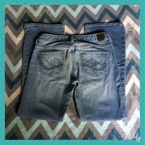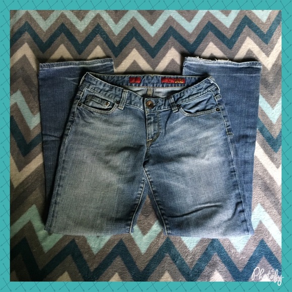 Express X2 w10 Bootcut Jeans. Size 4 (27) with 30" inseam. Has some frey on left heel, but still in EUC.