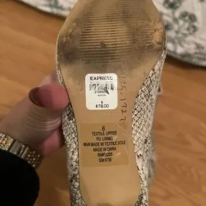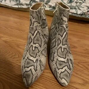 Express Snakeskin booties, cream and black, short heel only worn twice