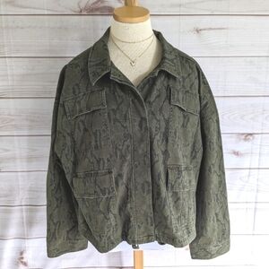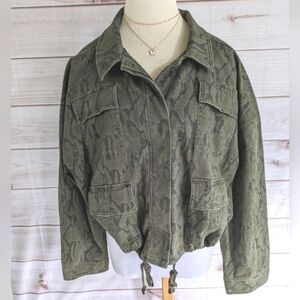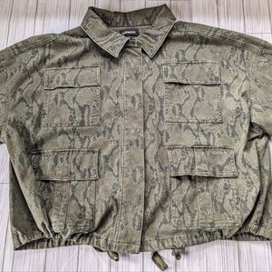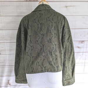 Express Boxy Denim Jacket in Snakeskin Print in Cami Green Size XL