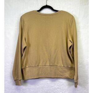 Express Skimming V-Neck Long Sleeve Pleated Shoulder Top Brown Women's Size XL